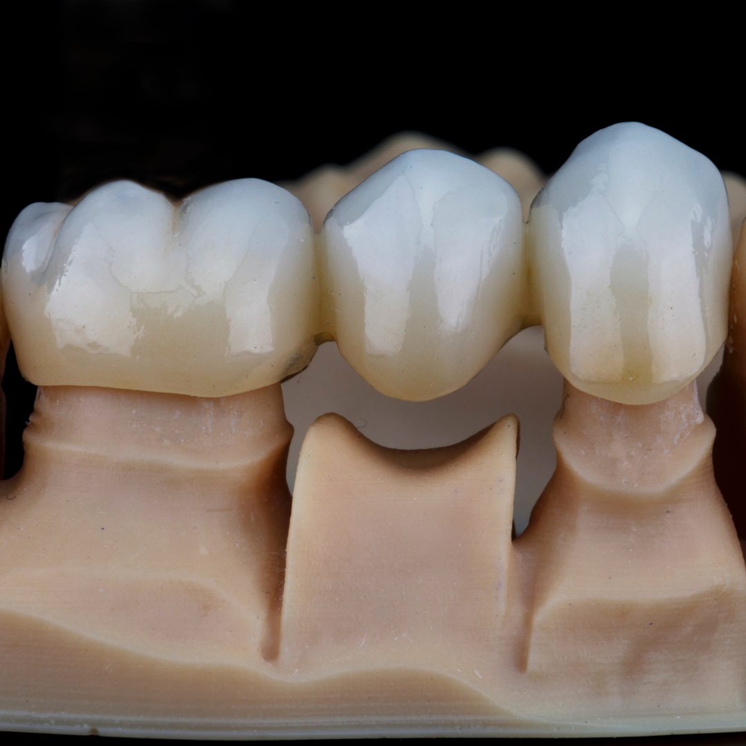 A dental bridge is a non-removable dental restoration that replaces a missing tooth or group of teeth, involving adjacent teeth, allowing you to restore the functionality of the teeth and the natural appearance of the smile. Dental bridges help prevent the displacement of adjacent teeth and maintain bite stability, as well as being a safe alternative to removable dentures. If necessary, dental bridges can be combined with dental implants to replace several missing teeth at once.