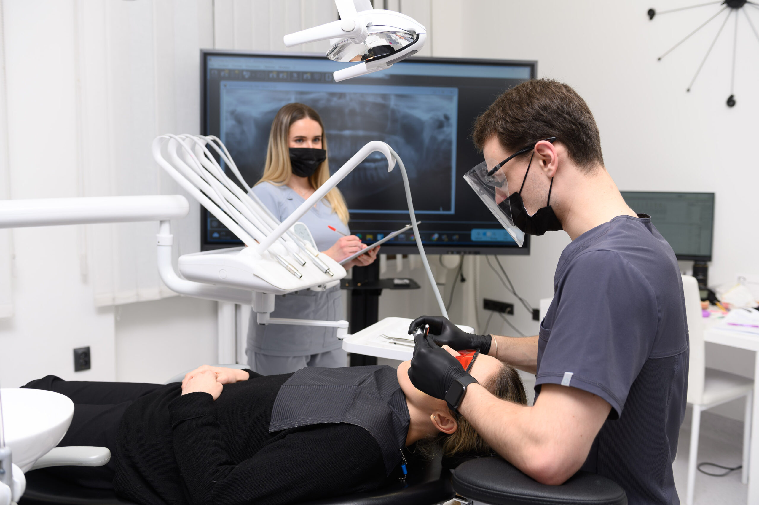 Periodontal treatment typically involves a detailed examination of the teeth and gums and performing X-ray diagnostics.